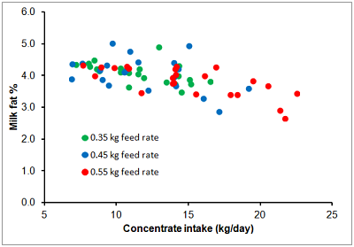 Figure 3 Effect of concentrate intake on milk fat percentage